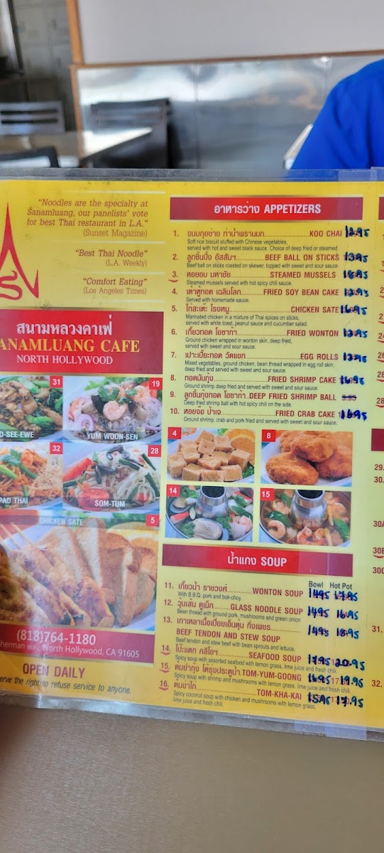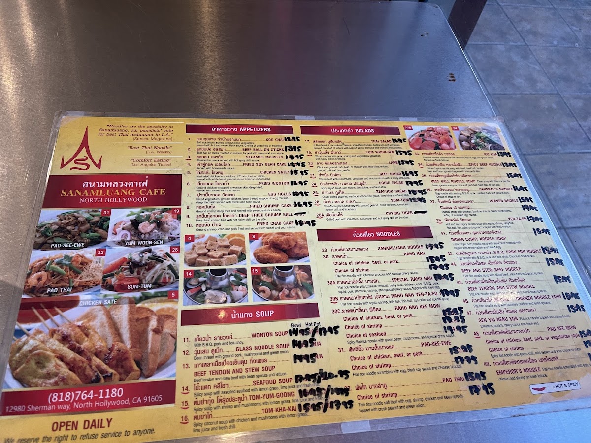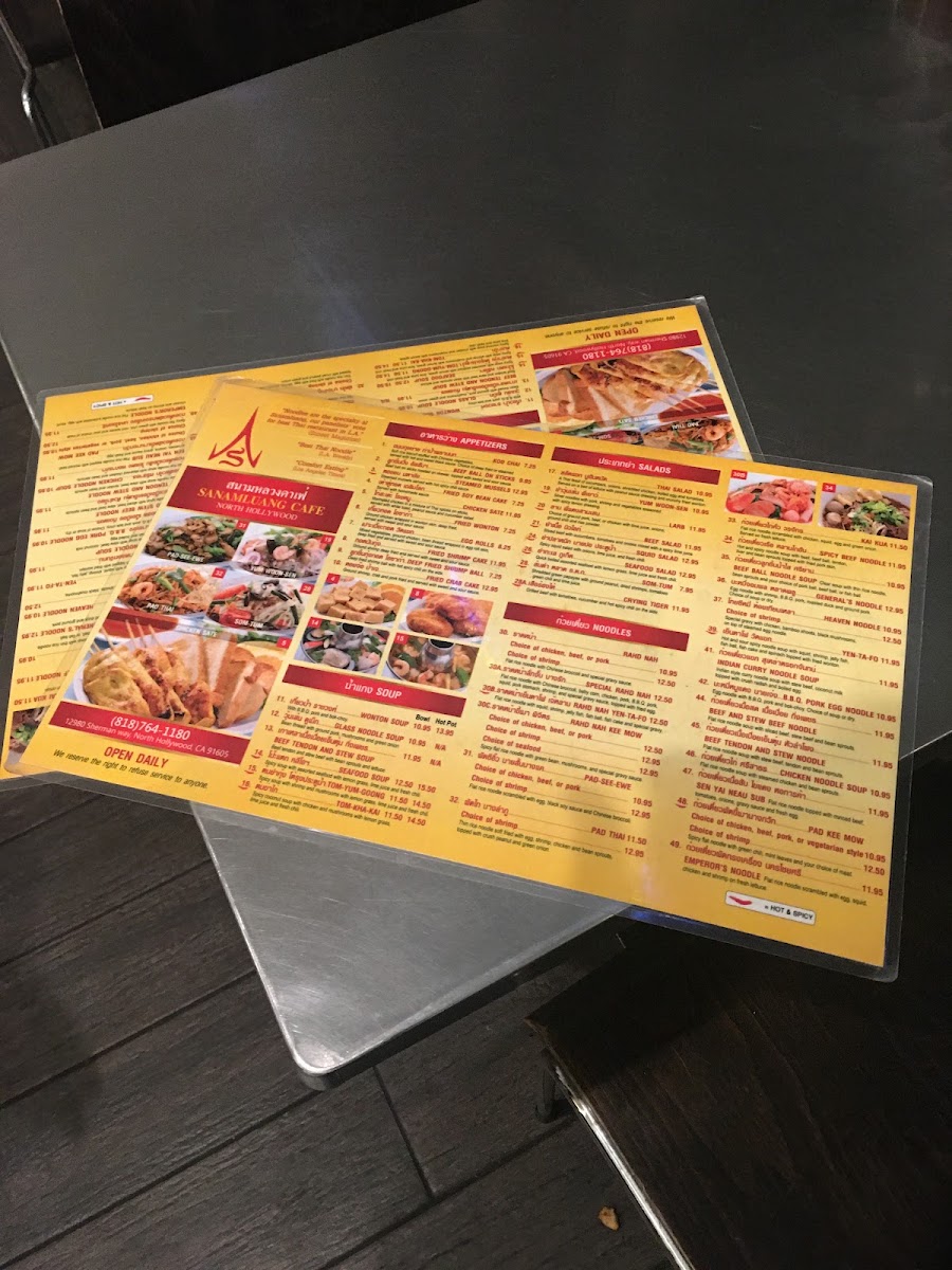 Sanamluang Café N. Hollywood, where we invite you to embark on a culinary journey through the vibrant tastes of Thailand! Nestled at 12980 Sherman Way in North Hollywood, our menu is a delightful showcase of authentic flavors that will tantalize your taste buds. Don't miss our signature Tom-Yum Hot Pot, bursting with zesty notes that perfectly capture the heart of Thai cuisine. Dive into our expertly crafted Pad Thai Noodles and savor the rich blend of textures, or spice things up with our Pad Kee Mow. For a comforting classic, our Crispy Chicken over Rice and Wonton Soup are must-tries. Whether you're in the mood for a refreshing Papaya Salad Pad Thai or the bold flavors of Spicy Beef Noodle Soup, each dish is prepared with love and a dash of creativity. Treat yourself to the sweet end of your meal with our Mango Sticky Rice or a thirst-quenching Thai Iced Tea Boba. With so many delicious options, there's something for everyone to enjoy at Sanamluang Café! Come and experience why we are a beloved spot for all things Thai in North Hollywood.